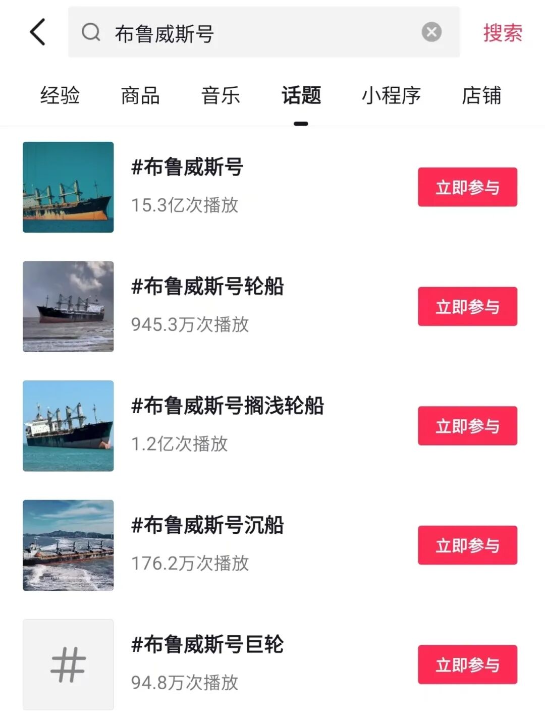 “布鲁威斯”号于2022年9月因受台风“南玛都”外围环流影响搁浅。经过一年的沉淀,该轮在去年春天爆火。目前,该轮在某短视频平台相关话题下的视频播放量已高达十几亿,成为了威海著名的网红打卡地。
