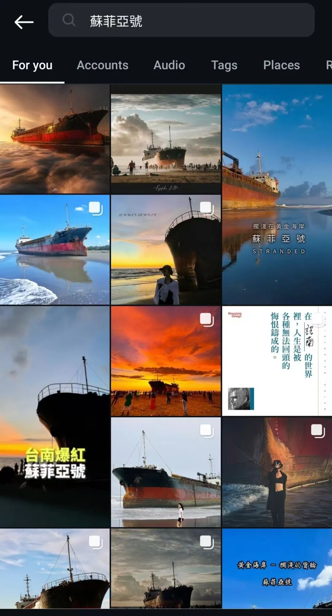 据台湾中时新闻网7月26日报道,受到台风“格美”影响,台湾附近海域有8艘货轮搁浅、沉没,大部分船员获救。三艘货轮分别搁浅在台南黄金海岸、曾文溪及鹿耳门溪出海口。而搁浅在黄金海岸沙滩的这艘“苏菲亚”号,因其离岸最近,傍晚又有夕阳相伴,意外成“网红”拍照打卡美景,一度为当地带入观光人潮。