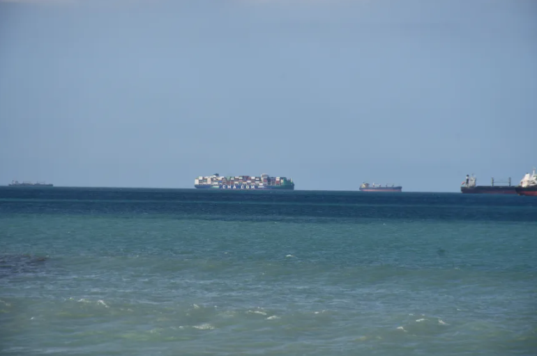8月18日,“达飞 贝伦”号集装箱船在南非东开普省Gqeberha附近的阿尔哥亚湾避难。图源/SAMSA