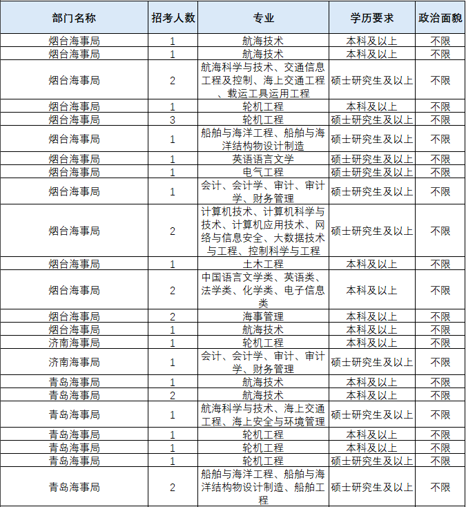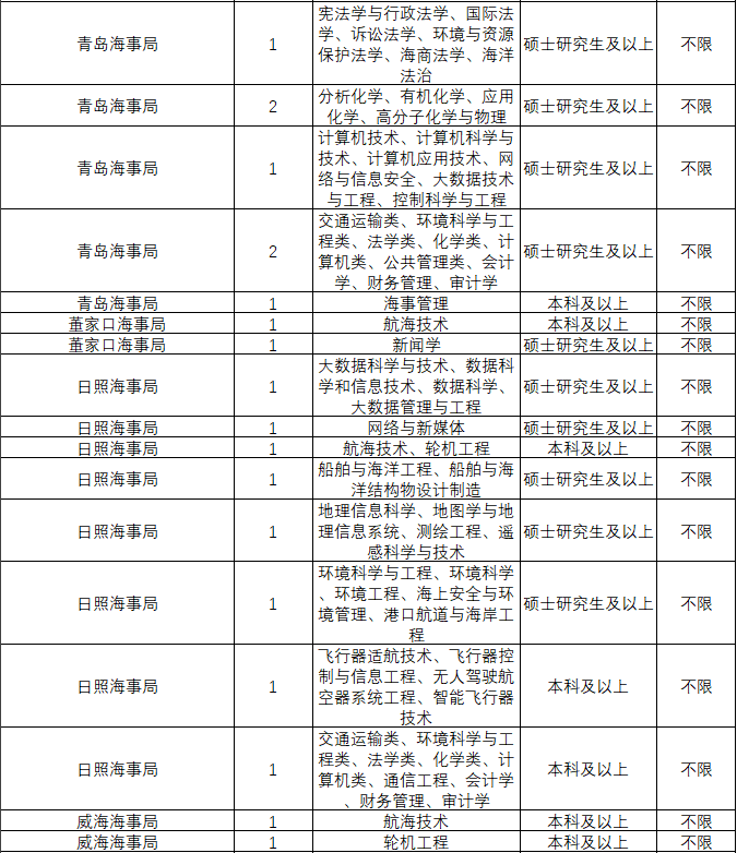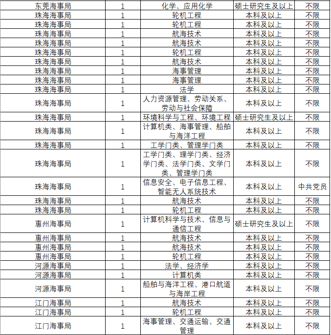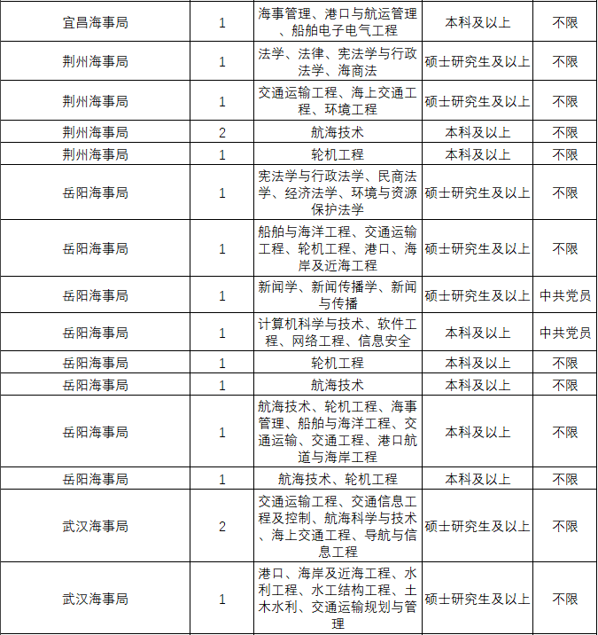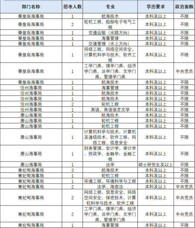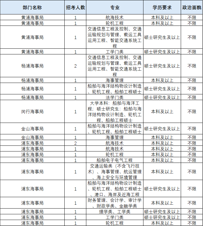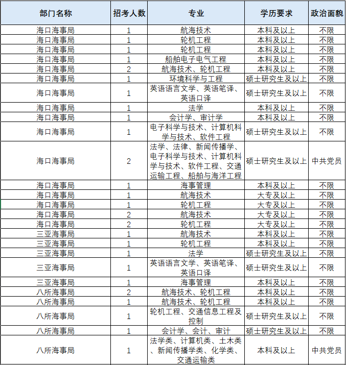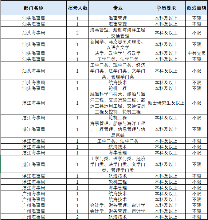其中,交通运输部直属部门计划招录4人,交通运输部海事局直属海事系统计划招录798人,招考信息(按照发布表排序)如下:
