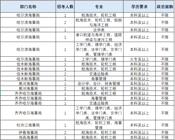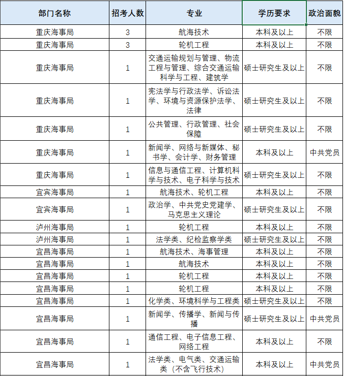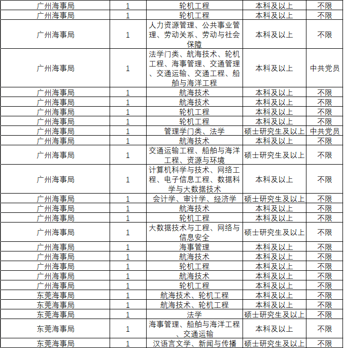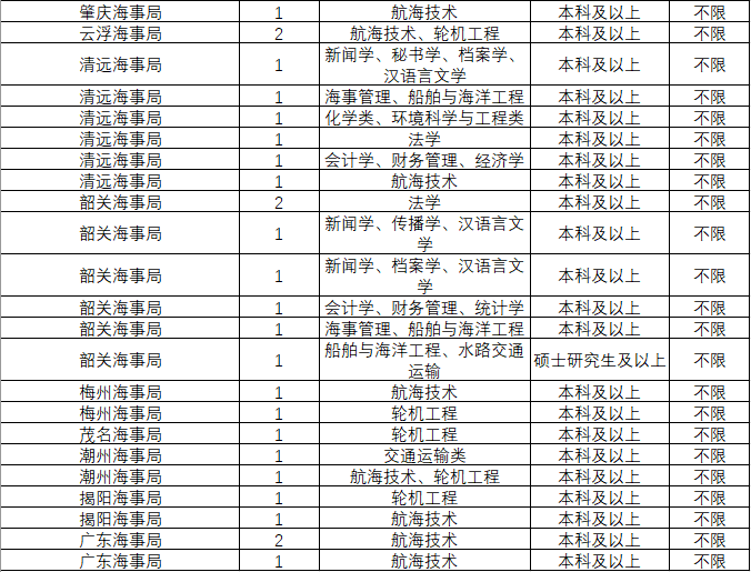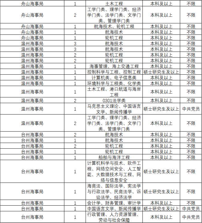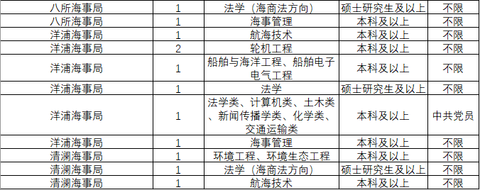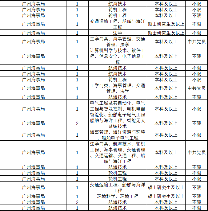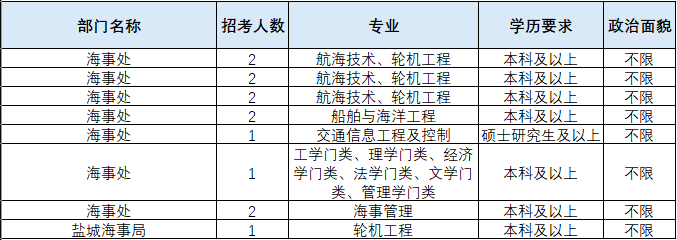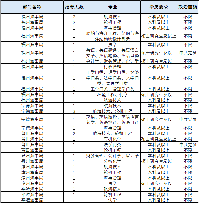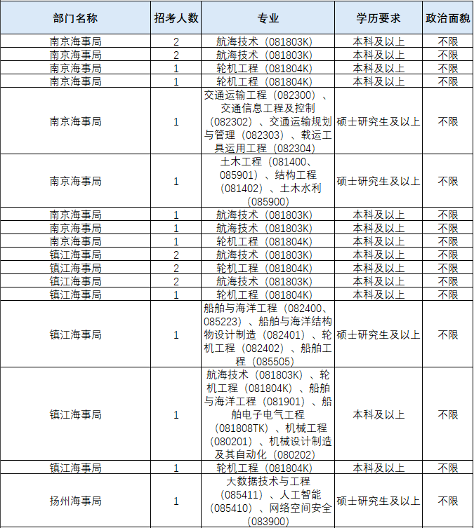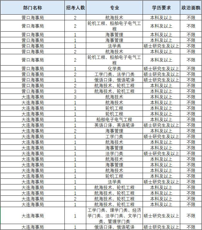其中,交通运输部直属部门计划招录4人,交通运输部海事局直属海事系统计划招录798人,招考信息(按照发布表排序)如下:
