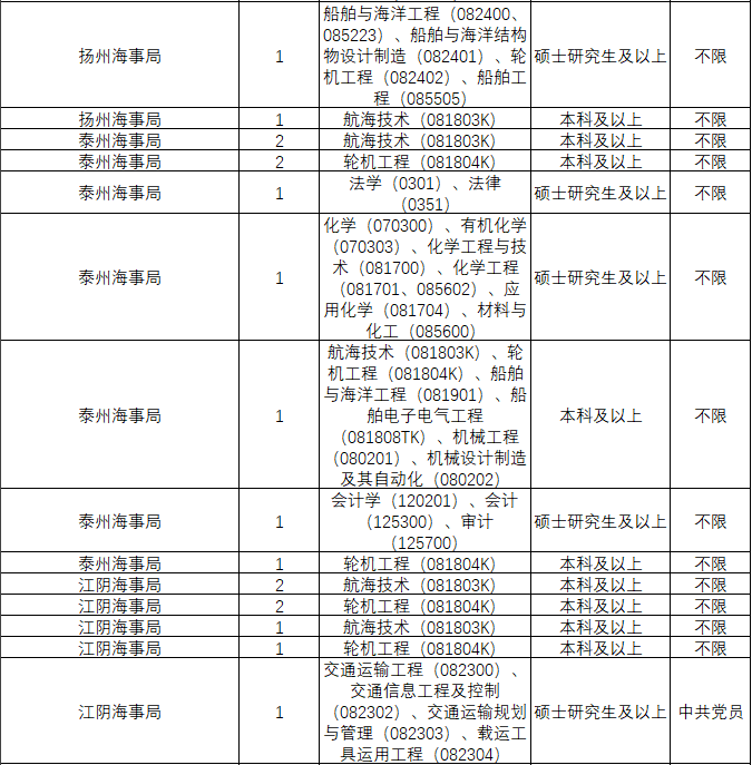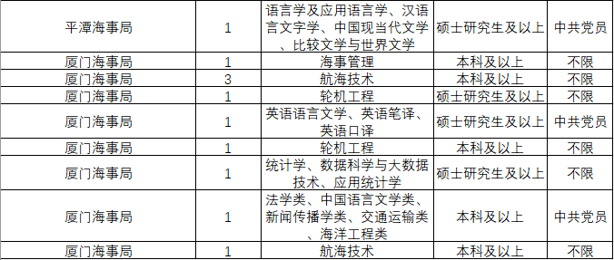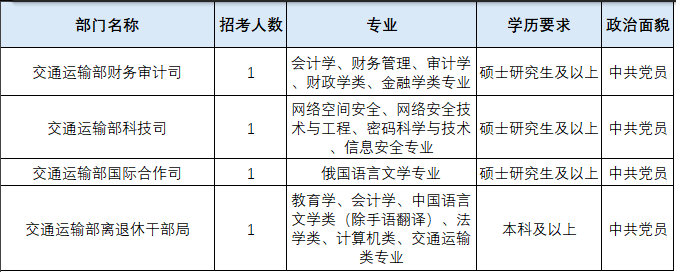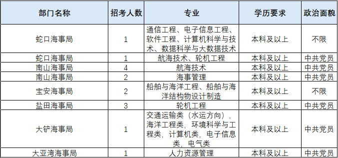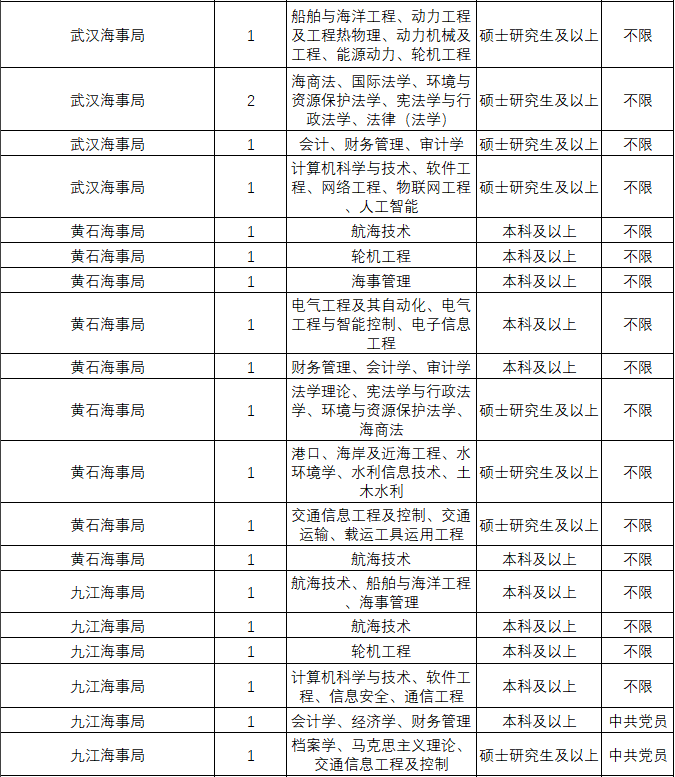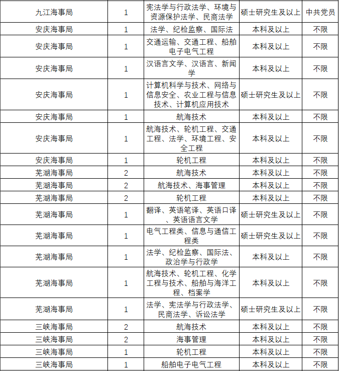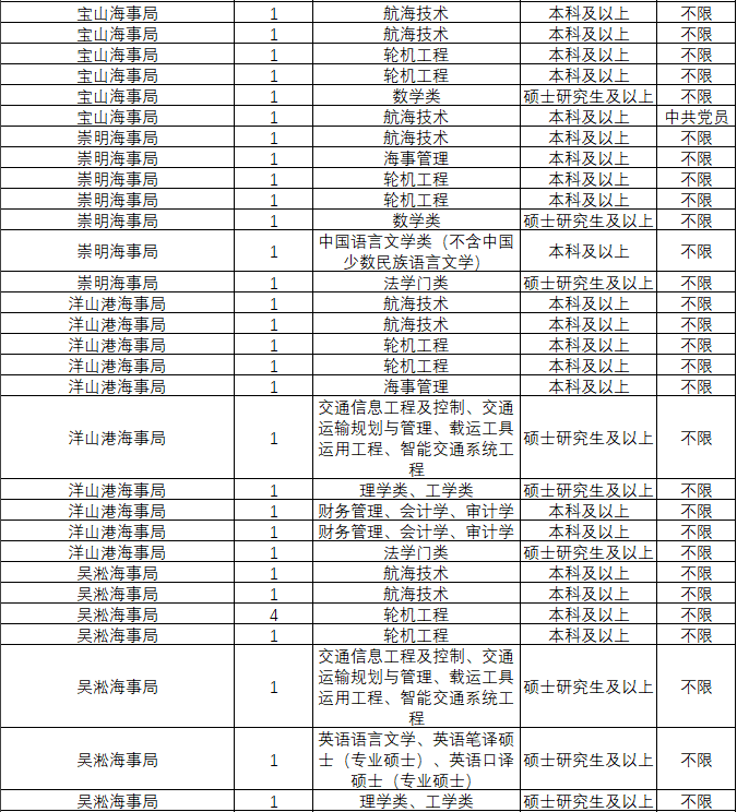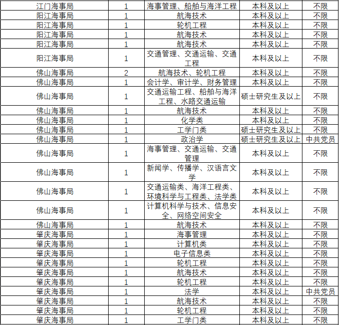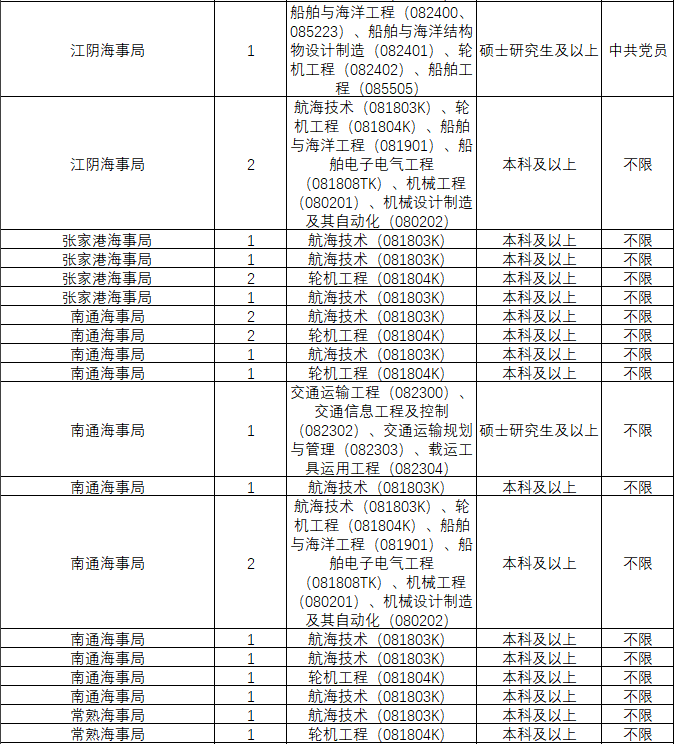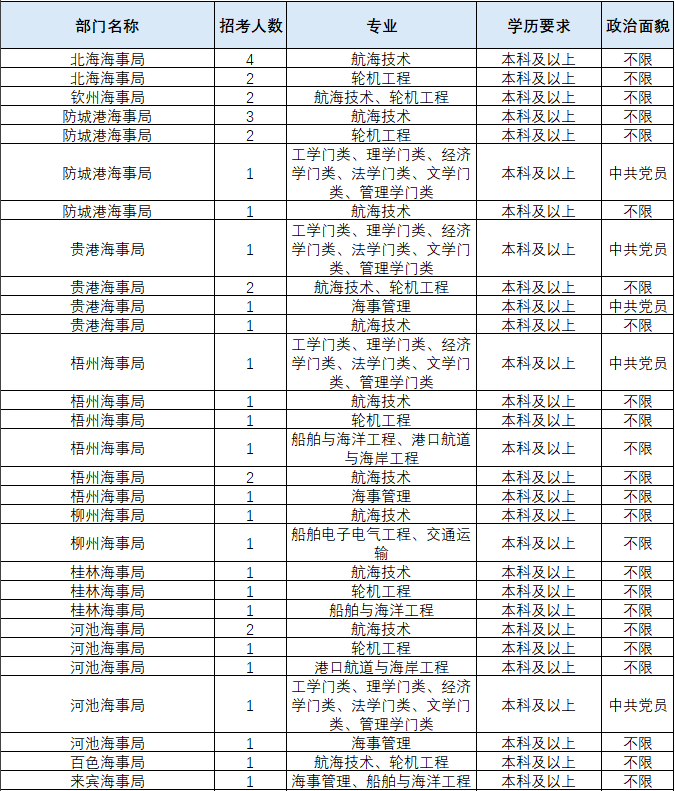 其中,交通运输部直属部门计划招录4人,交通运输部海事局直属海事系统计划招录798人,招考信息(按照发布表排序)如下: