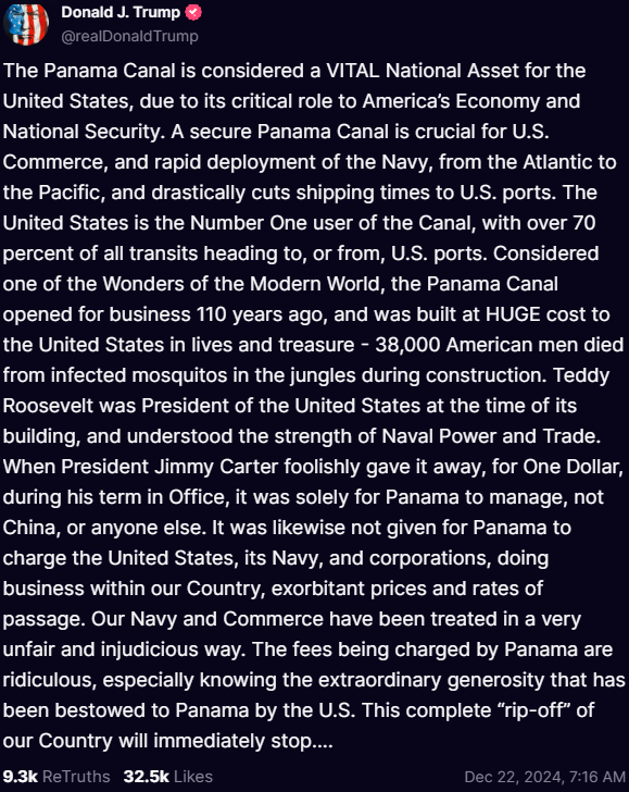 特朗普威胁要“夺回”巴拿马运河,还甩锅中国?