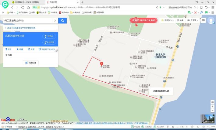评估考场分为秦皇岛兴荣海事学校和船员考试中心两个考点,船员考试中心交通方式同上,秦皇岛兴荣海事学校地址为秦皇岛市北戴河区海滨林场林涛路15号,公交线路为34路,北戴河国际俱乐部站下车,步行1000米左右到达,路线见下图。
