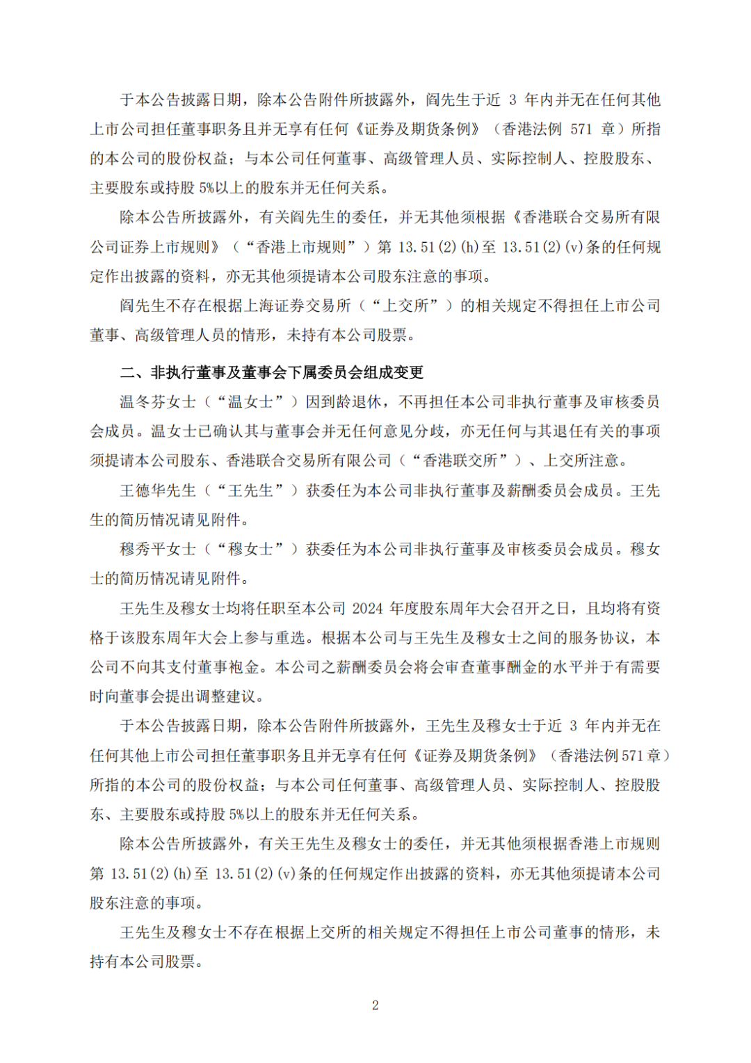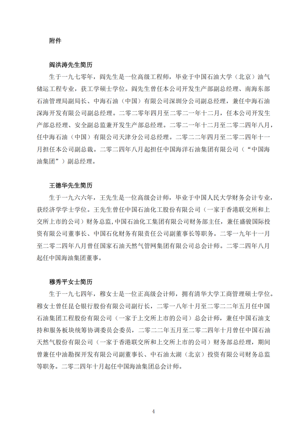 温冬芬因到龄退休,不再担任中国海洋石油有限公司非执行董事及审核委员会成员。