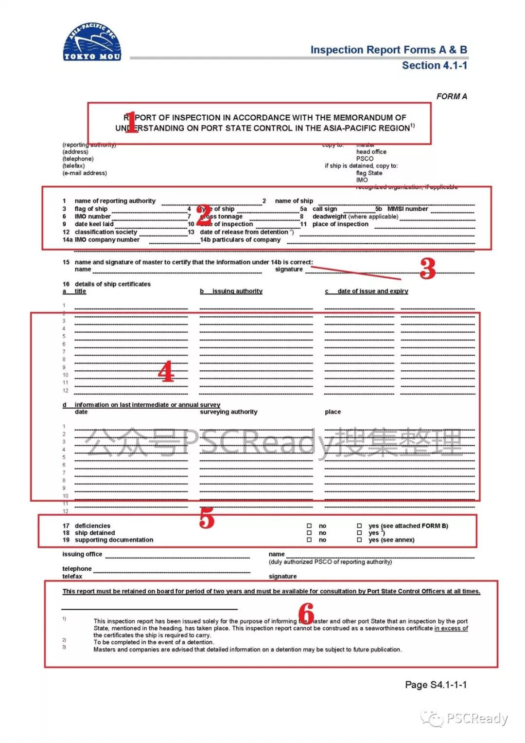 东京备忘录的PSC检查报告,有标准模板,整个东京备忘录的国家,无论韩国、日本、中国、香港等都是用的同一个版本。东京备忘录的PSC报告,分两部分,Form A和Form B两部分。