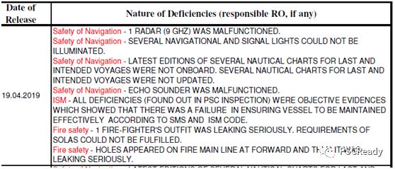 4是缺陷描述,缺陷描述具体描述了什么缺陷,PSCReady经常解读的案例就是这一部分。香港PSCO在这方面做的比较公开,定期公布缺陷。下图是香港船期国公布的内容。