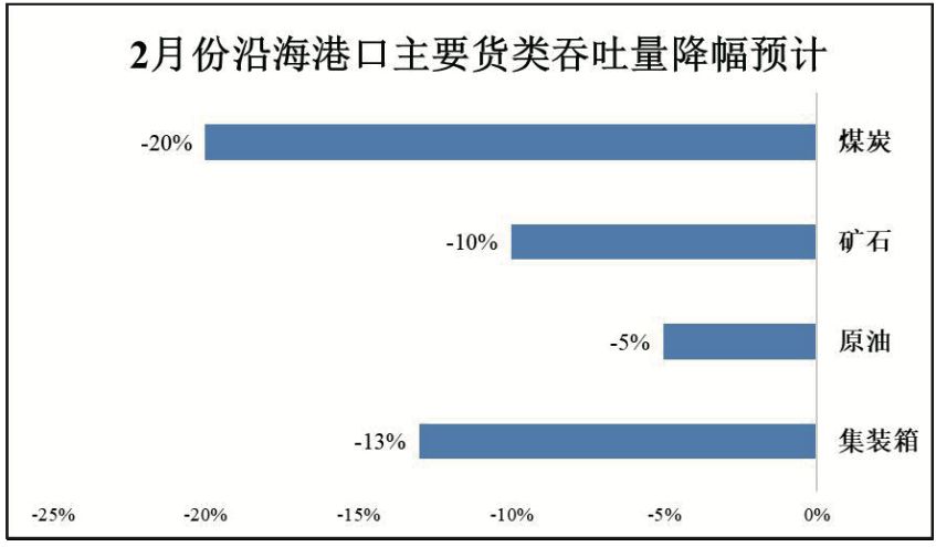 图4 2月份沿海港口主要货类吞吐量降幅预计