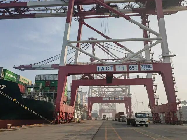 这是“长胜”轮在联盟国际集装箱码头进行装卸作业。新华社记者 杨文 摄
