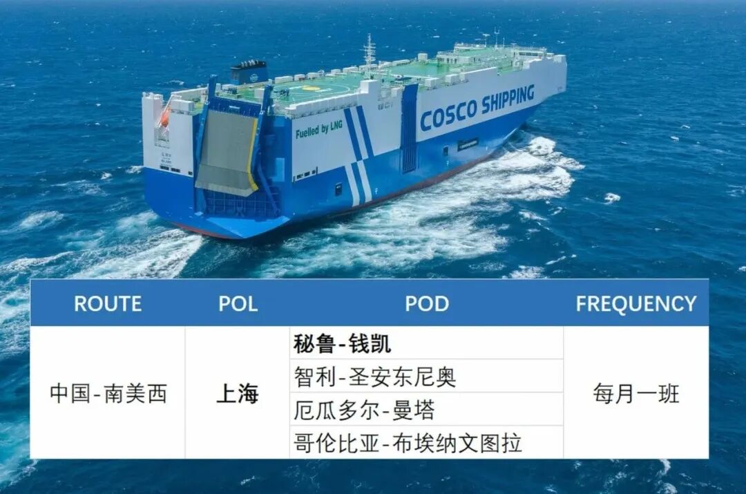远海汽车船此次开通的南美西班轮航线,提供每月一班的稳定班期服务,主要锚定秘鲁的钱凯港和智利的圣安东尼奥,并依据市场需求加挂哥伦比亚和厄瓜多尔及区域内其他国家的港口。这也是远海汽车船公司继波斯湾航线、东南非航线、欧洲航线开通后的第四条班轮航线。