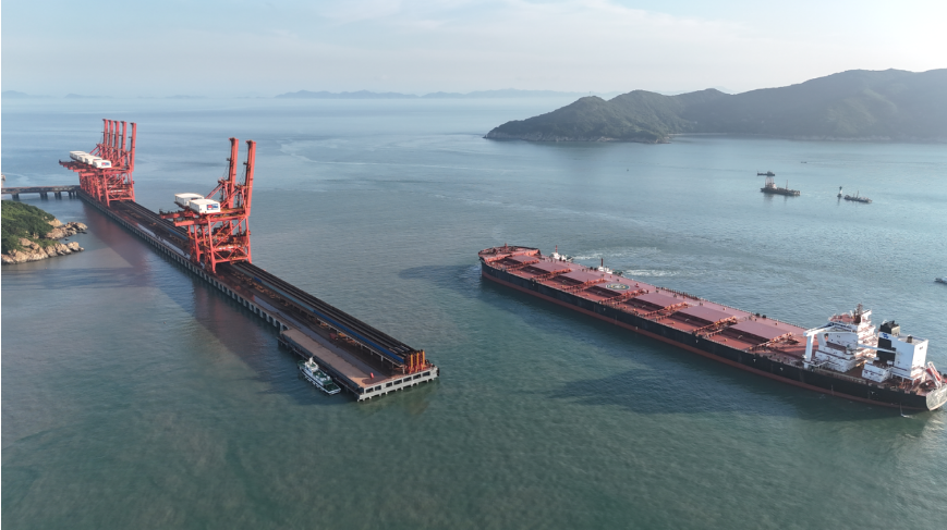 “五大优势”高效服务,做优“双40万吨矿船同靠接卸”。区位、深水、加工、体系协同、保税,是鼠浪湖矿石中转码头备受全球采矿企业垂青的“五大优势”。