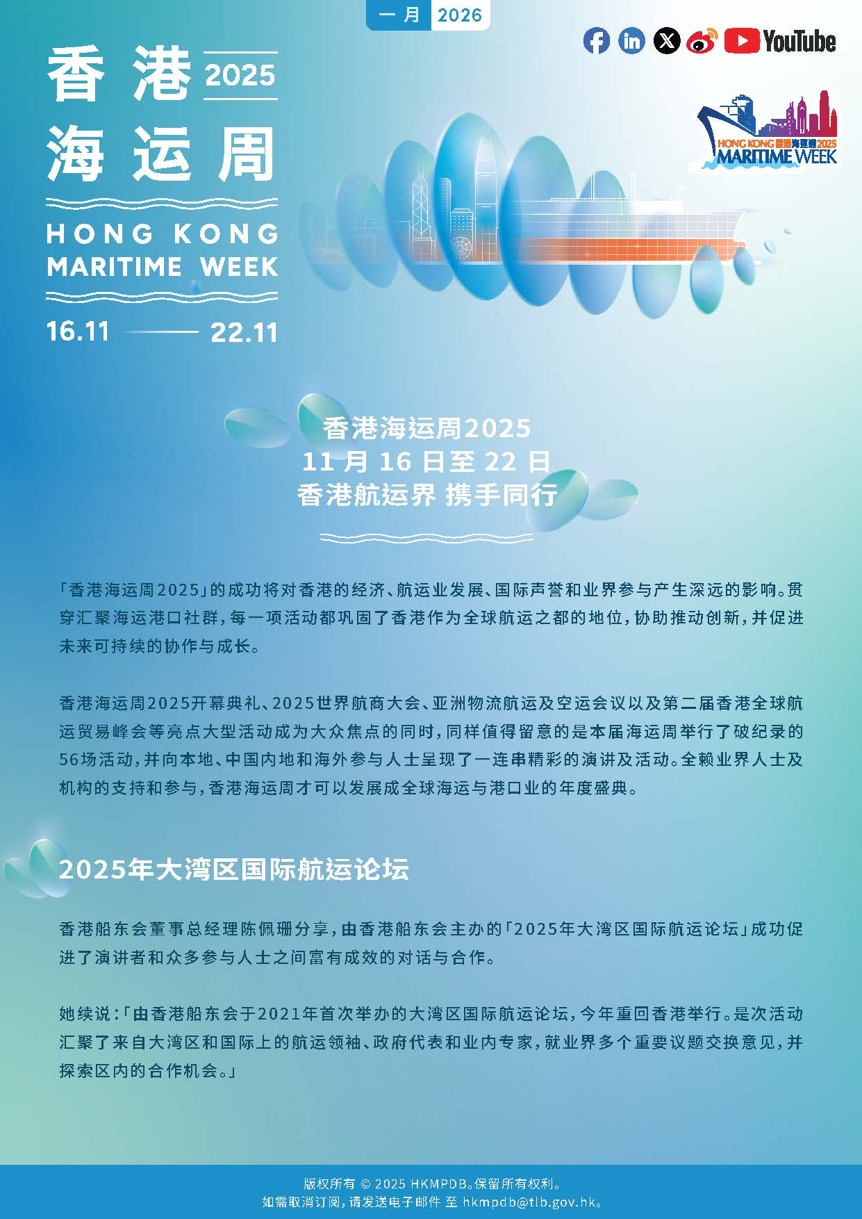 香港海运周2025 11月16日至22日香港航运界 携手同行