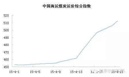 本周,沿海煤炭运输市场活跃度进一步增强,运价回升明显。4月21日,中国海运煤炭运价综合指数报收512.71,比20日上涨6.57,比14日上涨41.32。据中国煤炭资源网数据监测,4月以来,该指数已经连续12日保持上涨态势。