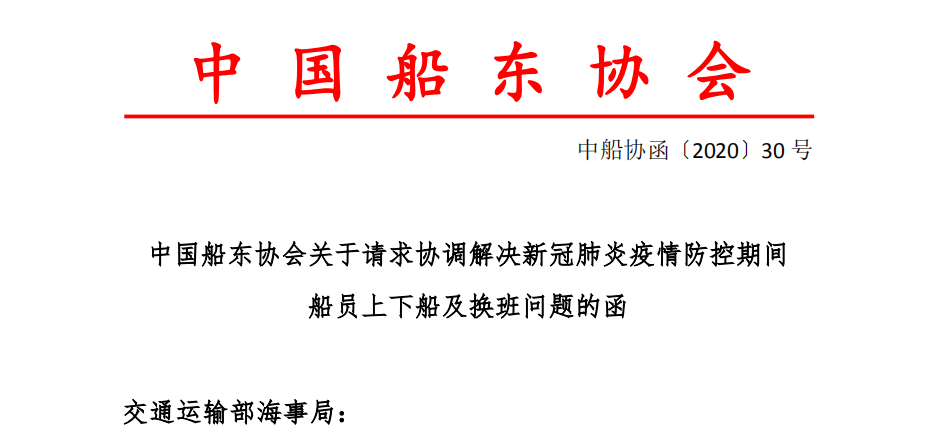 这场新冠疫情,从各个层面给航运业造成了冲击和不便,其中船员的换班问题,就是疫情之下船公司和船员面临的一大难题。为推动解决这个问题,中国船东协会日前向交通运输部海事局提请发出了《关于请求协调解决新冠肺炎疫情防控期间船员上下船及换班问题的函》(以下称为《船员换班问题函》)......