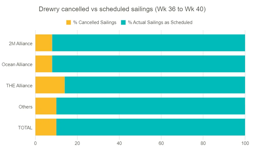 在国庆黄金周假期之前,班轮公司取消了多个从亚洲-欧洲及亚洲-美国的出口航次。