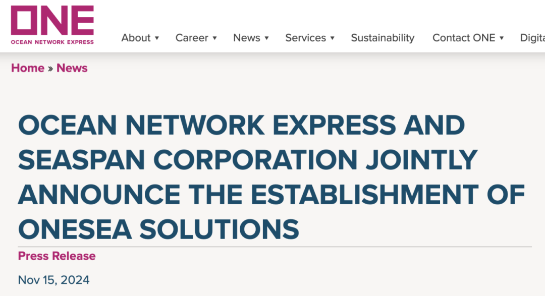 据CNSS了解,11月15日,Ocean Network Express(ONE)和Seaspan Corporation(SEASPAN)宣布成立合资企业OneSea Solutions(ONESEA),旨在变革技术船舶管理和海事人才发展。 ONESEA总部位于新加坡,将为ONE旗下的集装箱船以及ONE从不同船东处租用的集装箱船提供技术船舶管理服务。该公司的使命不仅限于管理,还旨在树立安全、效率、脱碳和数字创新方面的新行业标准。 ONESEA新任首席执行官Raman Handa表示:“我们很高兴推出ONESEA,并致力于通过先进的技术和杰出的人才创造价值,达到行业最高标准。” ONESEA的成立标志着ONE与Seaspan的合作关系取得重大进展。ONE总部位于新加坡,由日本控股,是世界领先的班轮运输公司之一,拥有超过240艘船只,运力超过190万标准箱。另一方面,Seaspan是全球最大的集装箱吨位提供商,截至2024年6月30日,其运营船队规模达到217艘。