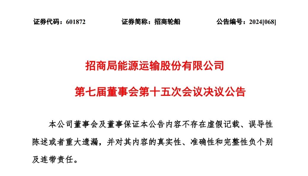 在公布前三季度财报的同日,招商轮船在第七届董事会第十五次会议决议公告中表示,董事会同意选举刘振华先生、陈学先生为公司第七届董事会副董事长,任职期限同第七届董事会。
