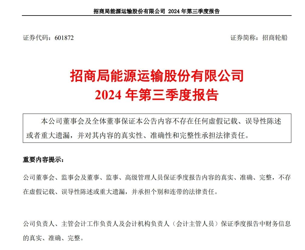 招商轮船:前三季度利润34亿元,公布最新人事任命!
