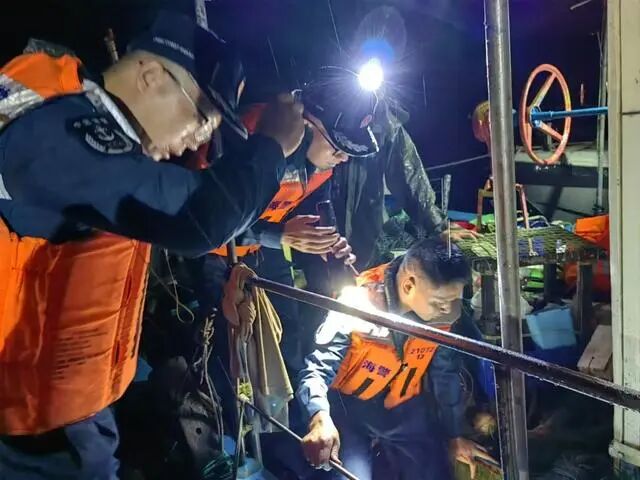 当晚,事发海域因下雨导致能见度低,海上救援条件差,给救援工作带来诸多不便。面对恶劣的海况,海警执法员克服种种困难,以最快速度抵达事发海域并开展细致搜索,最终在三杯酒岛南侧海域发现遇险渔船,并与一同抵达的地方搜救力量成功将两名船员转移至执法艇上。