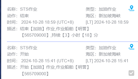 新加坡海事局(MPA)在29日凌晨发布了一份公告,指出28日下午大约5时40分,一艘悬挂巴哈马国旗的干散货船与一艘供油船在樟宜岸外进行加油作业时发生了漏油。根据当时视频显示,疑似加油加超,从透气帽泄漏。