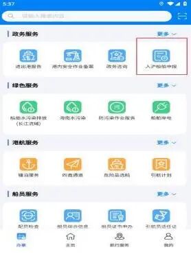 申报路径:登录 “海事通APP” → 选择“办事” → “政务服务” → “入沪船舶申报”
