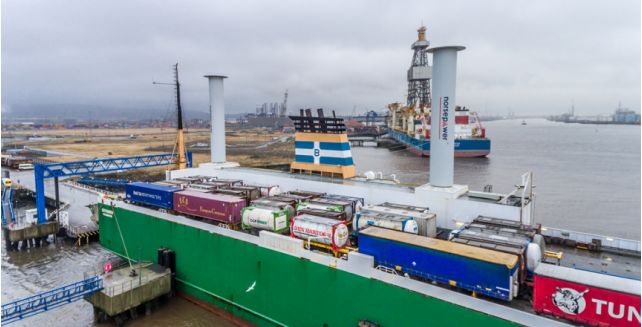 安装旋筒风帆的滚装杂货船“Estraden”