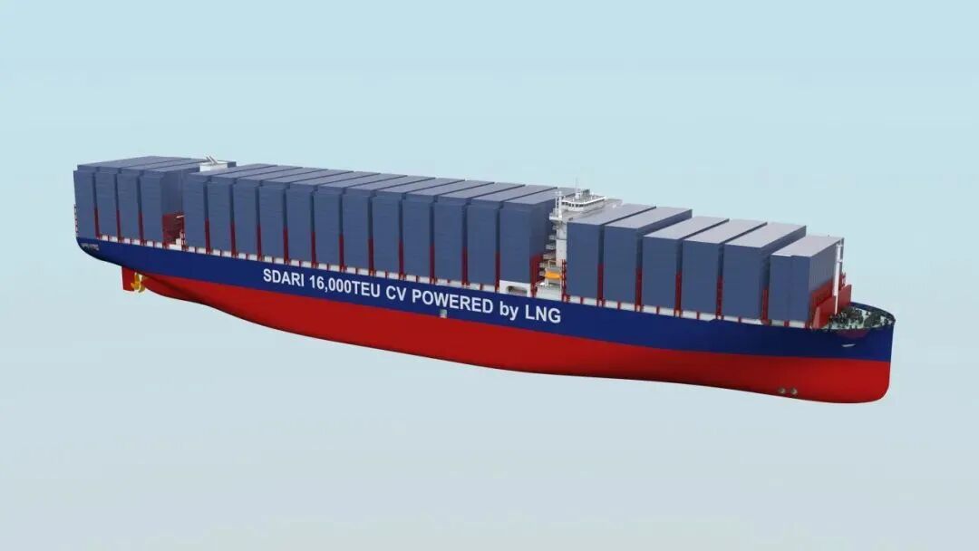 16000箱LNG双燃料动力集装箱船GREEN SEALION 16000是上船院研发的新一代超巴拿马大型集装箱船,获颁中国船级社(CCS)AiP证书。该船采用低波浪增阻S-BOW直艏线型,配合高效螺旋桨和扭曲舵,在不同运营工况和各级海况下,均能有效提升能耗表现,配合B型舱LNG动力系统,真正实现绿色低碳环保设计;采用宽体设计方案,缩短船长、降低船厂建造成本的同时,还可以有效降低运营过程中压载水的使用,既提升了实际营运的装箱量,又避免了频繁调整压载水,减轻船员工作负荷,还进一步降低压载水及沉淀物带来的环保风险。