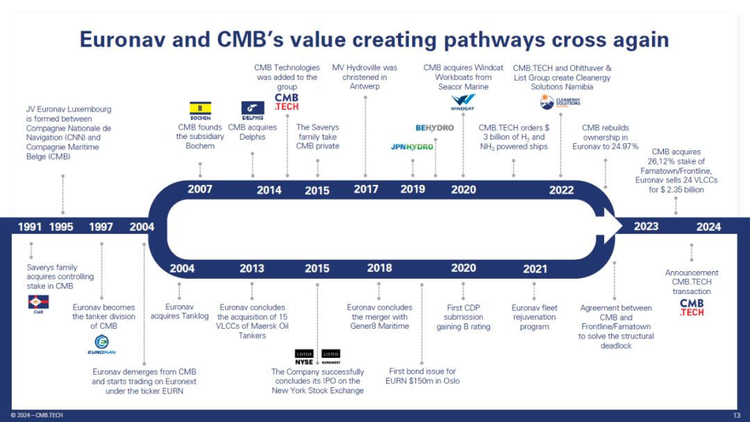 在今年年初的(1月12日)发布的战略中,该公司的掌门人Alexander Savery回顾了Euronav和CMB.TECH各自的发展情况,并宣布两个品牌将进行彻底的合并,Euronav将被重新命名,整合到CMB.TECH的品牌中。