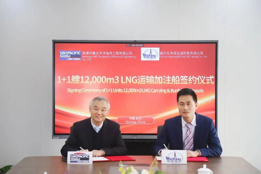 近日,中集安瑞科旗下南通中集太平洋海洋工程有限公司(以下简称“中集太平洋海工”)与福州五洋成品油贸易有限公司(以下简称“五洋油运”)签订了1+1艘12000方LNG运输加注船建造意向合同。