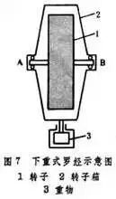 ①机械摆式陀螺罗经:按产生摆性力矩的方式可分为两种。一种是用弹性支承的单转子上重式水银器罗经,或称液体连通器式罗经(图6),如斯佩里型陀螺罗经;另一种是将陀螺仪重心置于支承中心之下,称为下重式罗经(图7),如安许茨型用液浮支承的双转子下重式罗经。